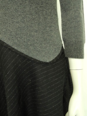 アシンメトリーな切り替えや裁ち切りの裾が個性的です。