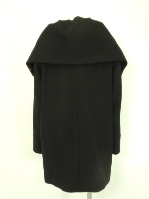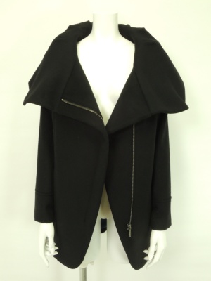 大きな衿とサイドに寄せたジッパーのデザインがオシャレなコート。