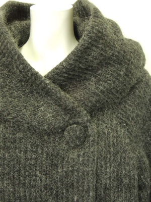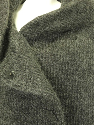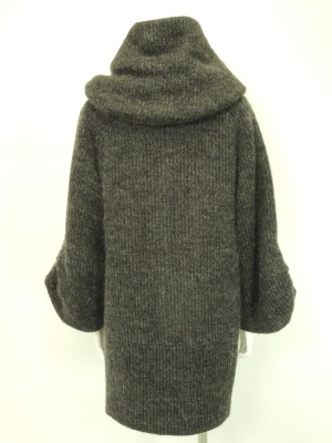 立体的でボリュームのある衿が特徴的なニットコート。
