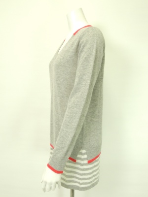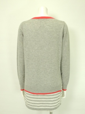 アクセントカラーを効かせた、重ね着風のニットチュニック。