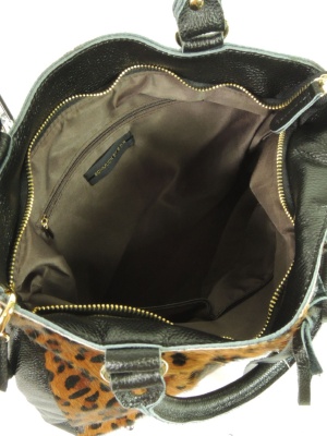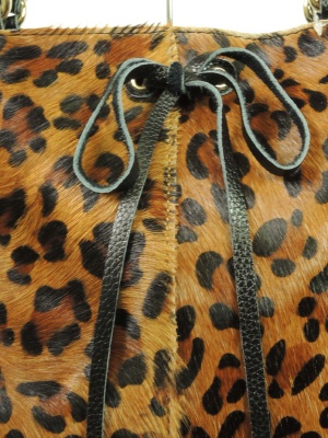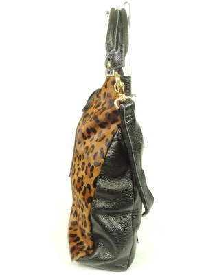 ハラコ部分はブラウン系のレオパード柄で、牛革部分は黒です。