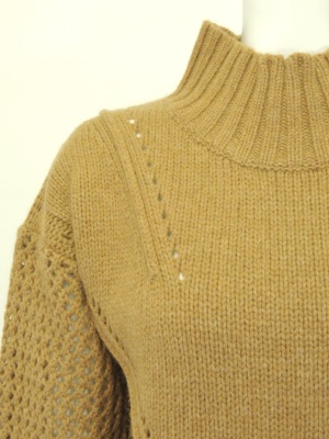 ケーブル編みやメッシュ編みなどを取り入れたざっくりニット。