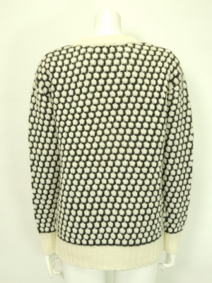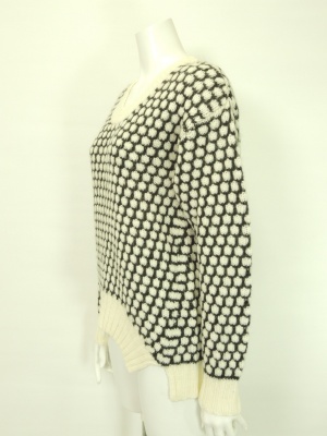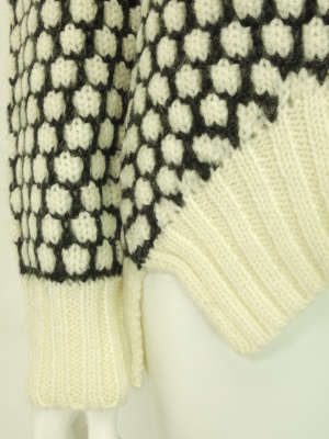 裾のデザインが個性的な、ドロップショルダーのニット。