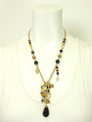 ウッドビーズや葉っぱモチーフのナチュラルなネックレス。