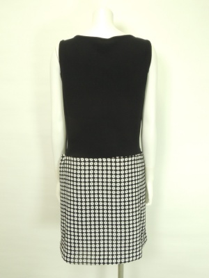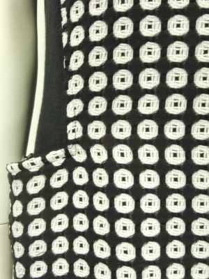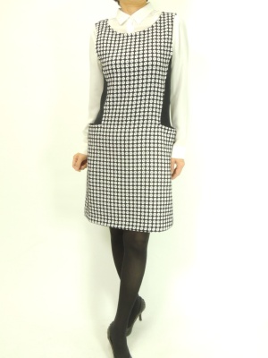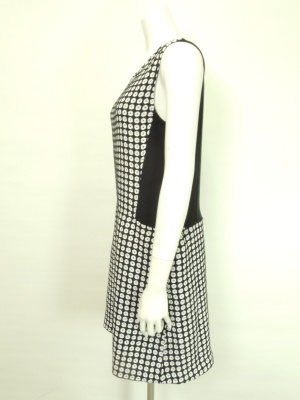 個性的な織りの白×黒ドットの生地が目を引くワンピース。