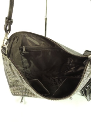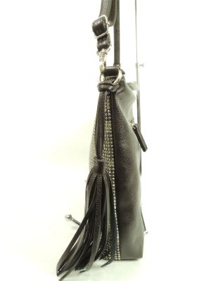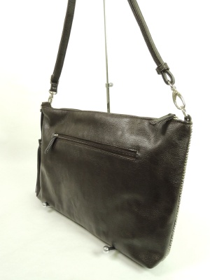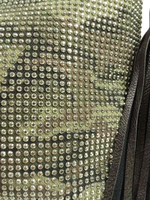 スタッズをたっぷり付けた迷彩柄のショルダーバッグ。