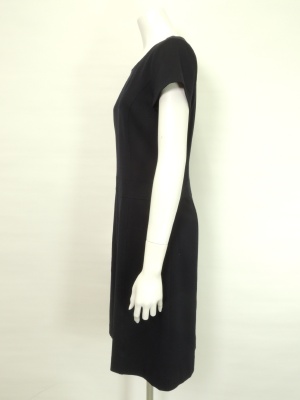 ジャケットを合わせやすい、シンプルな半袖ワンピース。