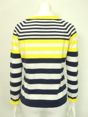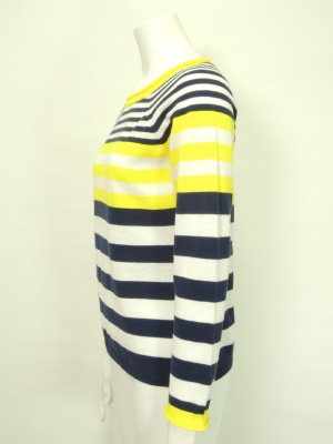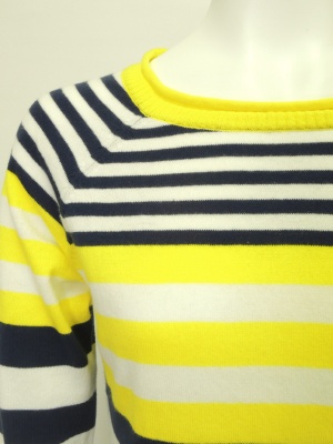 鮮やかなイエローが目を引くボーダーニット。
