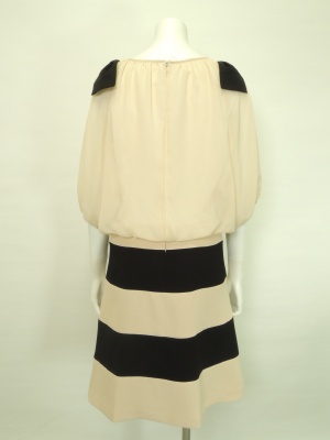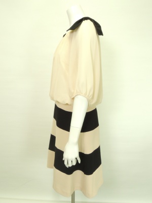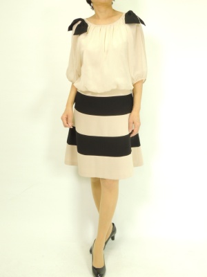 シフォンブラウスと切り替えボーダーフレアースカートのドッキングワンピース。