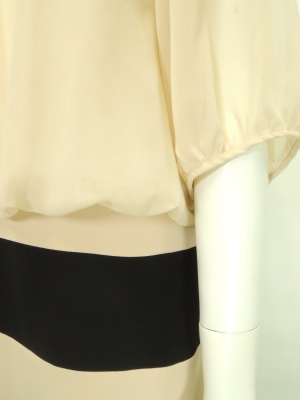 身頃は裏地付きで、お袖は透け感があります。