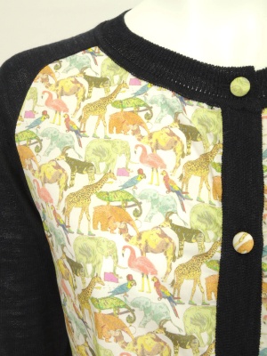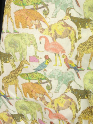 前身頃はいろんな動物がプリントされた、リバティ社の生地を使用しています。(綿100%)