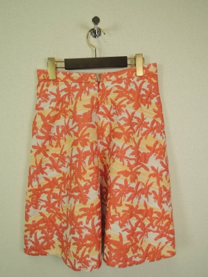 織り生地模様のフレアースカート、後ろファスナー、裏地なし、脇に切り込みポケット