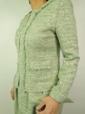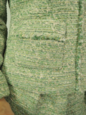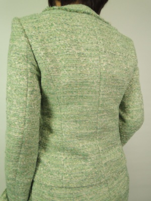 金糸入りツイード、カギホック、背抜き 袖口は折り返すデザイン