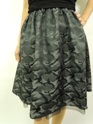 迷彩柄の生地とチュールの合わせ、 リバーシブル