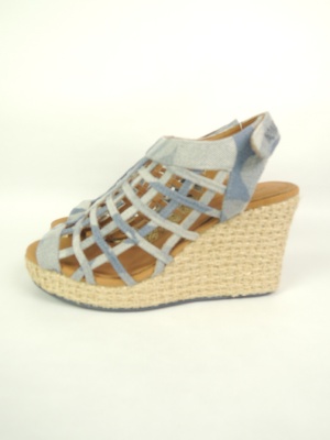 スカイブルーのカモフラ生地。 ベルトはマジックテープ、ソールはジュート巻き