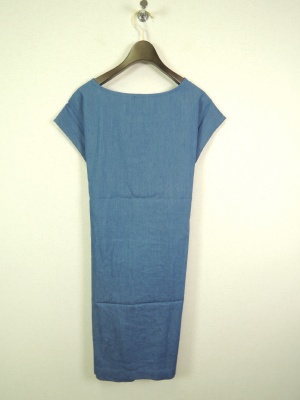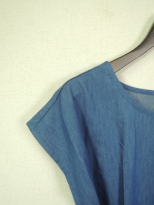 ダンガリー生地のワンピース、裏地なし リボンは前で結んで