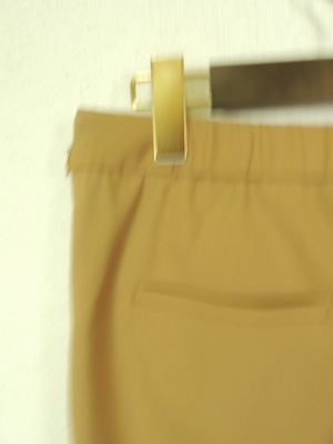 2タック入りテーパードパンツ、 ウエスト後ろだけギャザーゴム入り 脇ポケット、裏地有