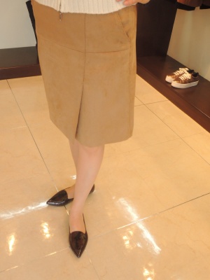 フェイクスエード、台形スカート、裏付き