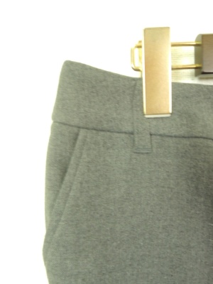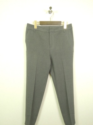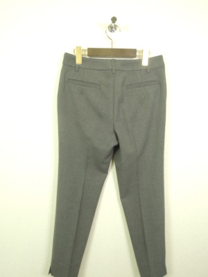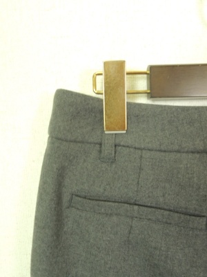 センタープレスのストレートパンツ 裏地なし、裾脇にスリット入り、 ダークブラウン(9号)着用写真