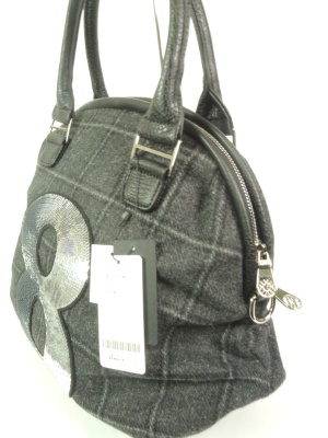 ウインドペン柄ツイードを使用 ストラップ付き、内側、パープルの無地 グレーは赤