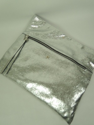 2つ折り、内側にもファスナーポケット 天ファスナーでなくホック使用、持ち手のベルトは取り外し可能、クラッチとしても使える