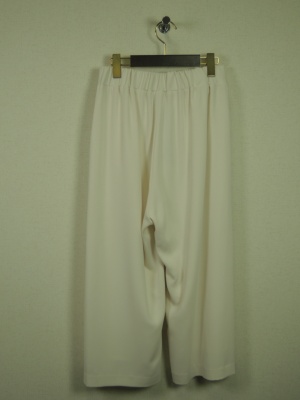 横ファスナー、ウェストの後ろがゴムになってます、タック入り、ガウチョ 92099と同じデザインですが白なので裏地付きの為、値段が違います、