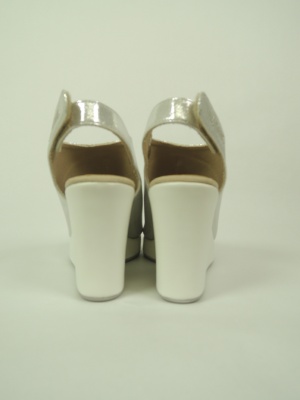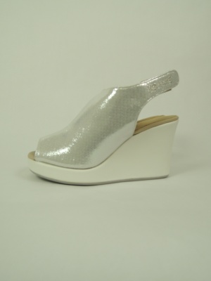 メタリック素材の輝くオープントゥサンダル