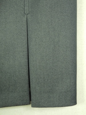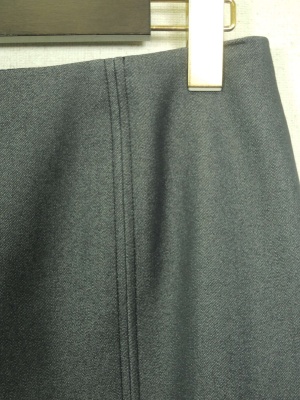 タイト デニム地風、裏地有り 前左にスリット、後ろファスナー