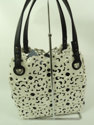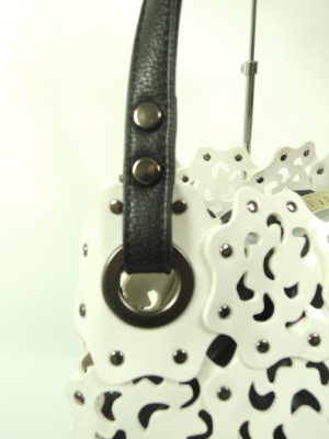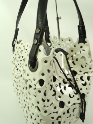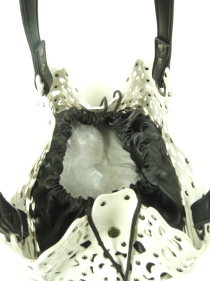 中に巾着(黒)が入ってます 外の透かしは合皮エナメルの光沢ある素材