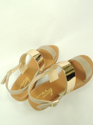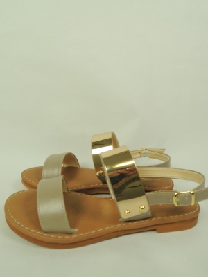 2本ベルトのペタンコサンダル 足首に近い方はメタル ベルトは内側にゴムが付いてます、サイズはM,Lのみ 23.5と24.5とそれぞれ書いておりますが あくまで目安です