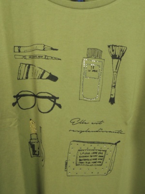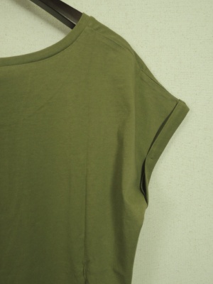 ドロップショルダー 袖折り返し イラストの一部にラインストーン 手洗い可能