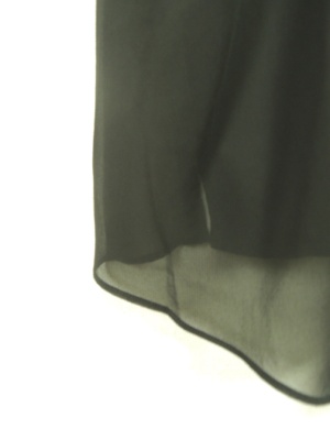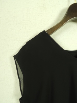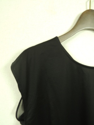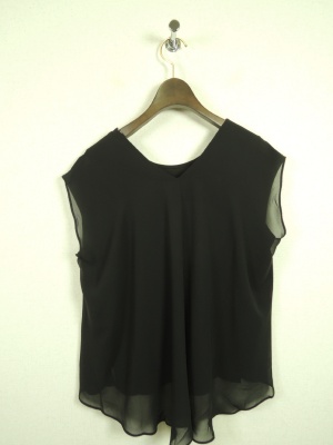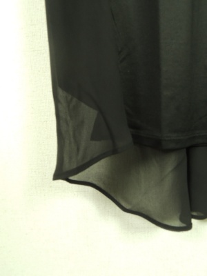 異素材使いで、後ろ身ごろが2枚合わせ(シフォン地を重ねてある)、後ろが長くて、後ろがV開き、前後逆にも着れる2WAYタイプ、手洗い可能