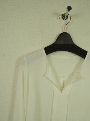 プルオーバーのブラウス、襟なし、手洗い可能、袖口にカフスあり