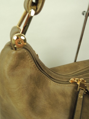 天ファスナーで入口が2つ、ショルダータイプ、内側の外ポケットひとつあり