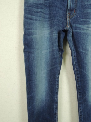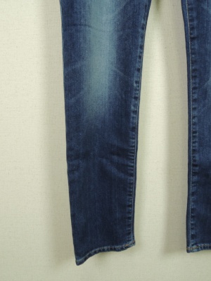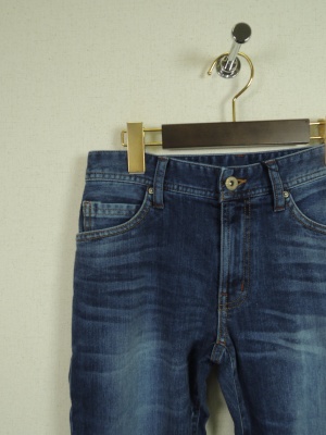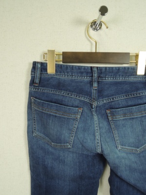 くるぶし丈の細身のデニム、ストレート寄りのデザイン