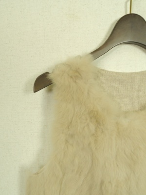 ラビットファーを使用したベスト、裏地付き、前ボタン、後ろ身ごろはニット