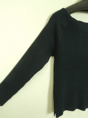 リブニット ネックが広く開いたデザイン