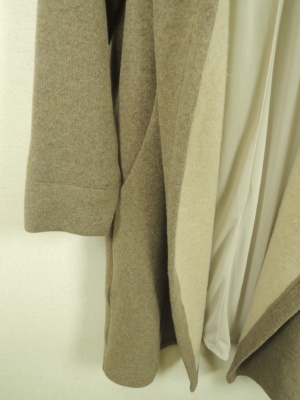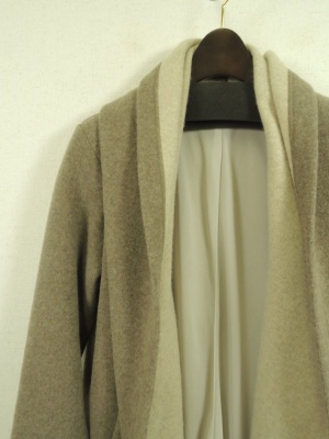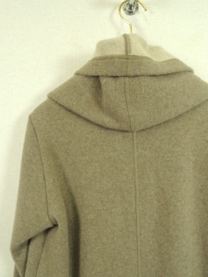 ダブルフェイス生地 裏地あり フード襟のようなボリューム感のある襟からそのまま前立てに流れるシルエット ボタンなし ポケット有り
