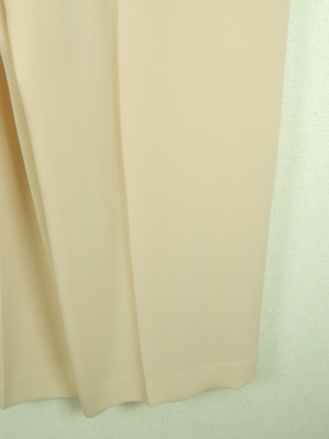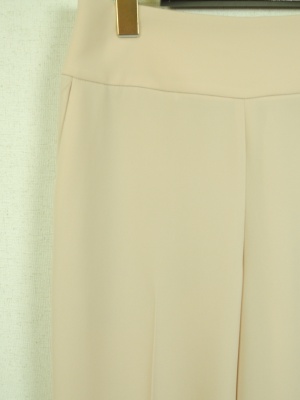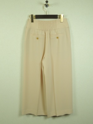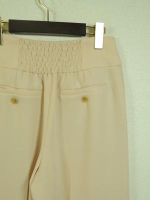 ID:94269とセットアップ、横ファスナー、白のみ裏地あり、脇ポケット、センターライン入り、ウェスト後ろにシャーリングゴム、ヒップ部分にポケットあり、グレーのみ生地置き換え(ポリエステル75%、レーヨン23%、ポリウレタン5%)