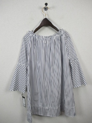 チュニック丈、オフショルダーにもなる2WAYタイプ、ベルスリーブ、袖の中央、裾カットワークレース