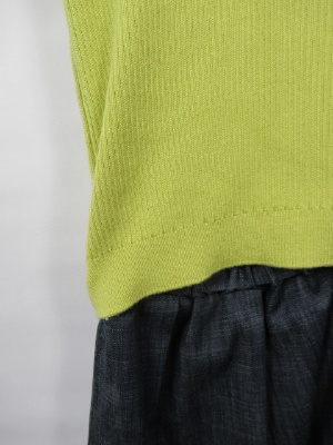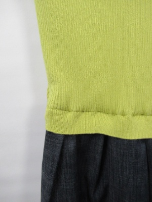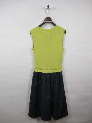 94789のカーデを合わせることもできます。スカート部分はダンガリー生地ウエストゴム スカート部分には裏地付き 上下ドッキングしてますが前だけあえて閉じてませんが着るとニットとスカート部分は開くことは有りません