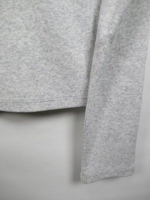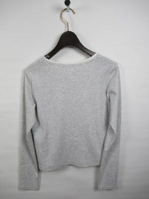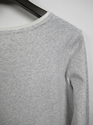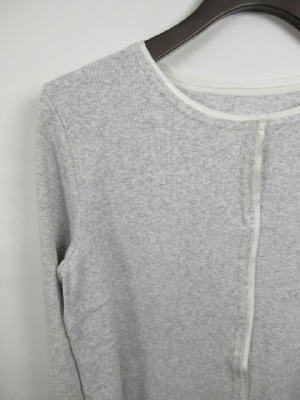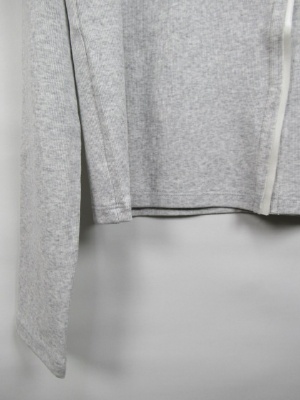 テレコのカーディガン、縁がサテン地、前ホック、手洗い可能