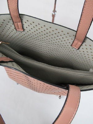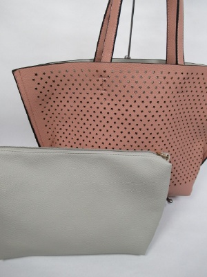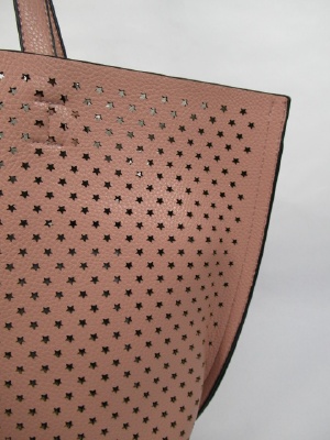 星の形のパンチング、インバッグがシルバーのみゴールド(バッグの裏側も)、白とピンクは薄いグレーです、2WAYにもできます