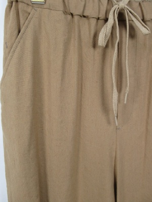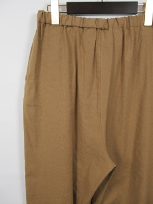 麻混の生地でカジュアルなシルエット 裏なし ウエストゴム入り(ドロストタイプ)脇ポケット やや太めなシルエット 手洗いOK 9号にしましたがやや細身です