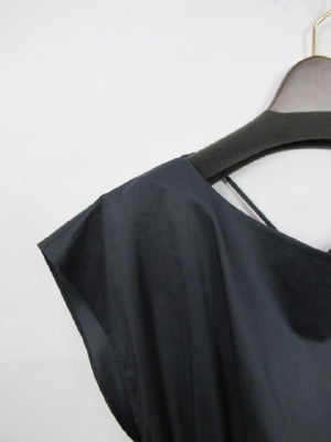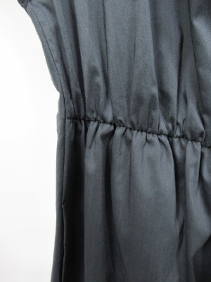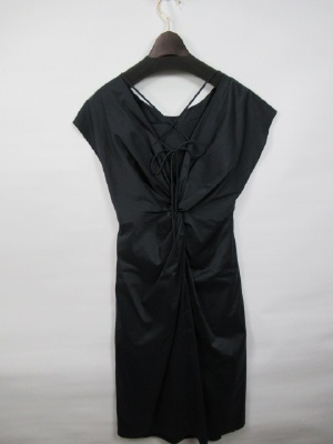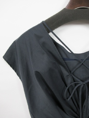 ウェストゴムで、後ろレースアップデザインのワンピース、フレンチスリーブ、中にキャミソールワンピ付き