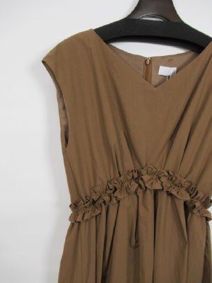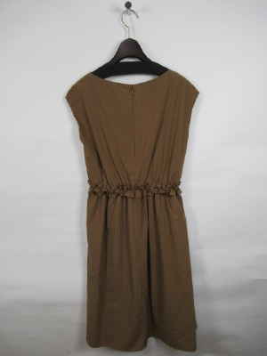 裏付きワンピース ウエストギャザーゴム入り(フリル) 裾前上がり 後ろファスナー