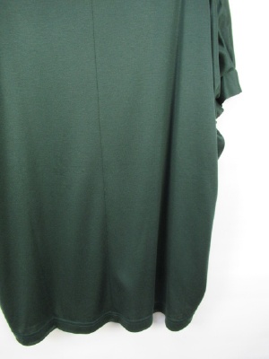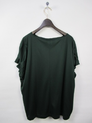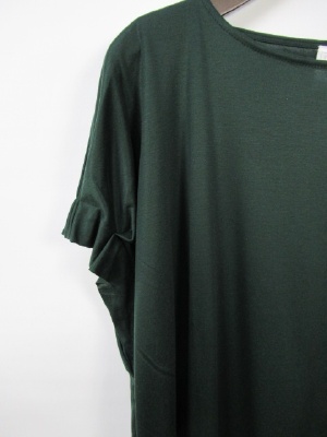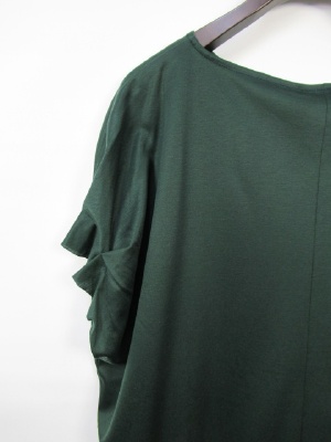 スクエアデザインで、袖口タック寄せ、袖の縁は切りっぱなし、手洗い可能