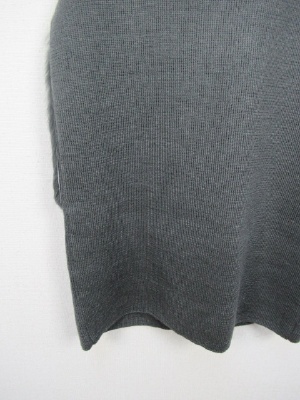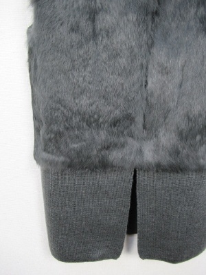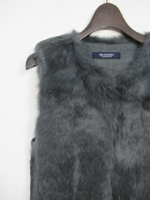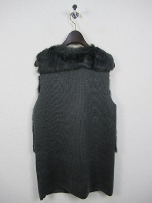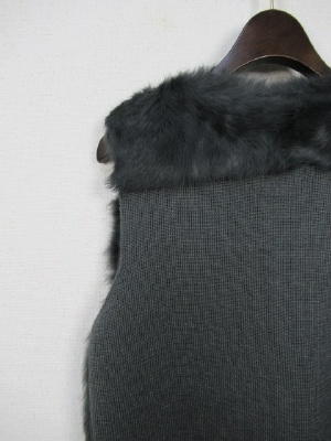 ラビットファーをニットに付けたやや長めの丈のベスト フロント鍵ホック
