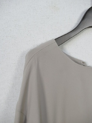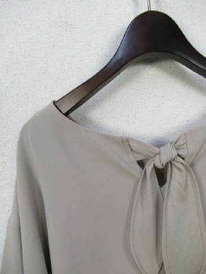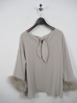 袖口に取り外し可能なフォックスファーをあしらったデザイン、やや袖口にかけて広がっています、後ろリボン、前後差、両脇スリット