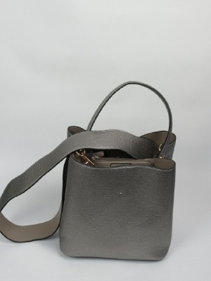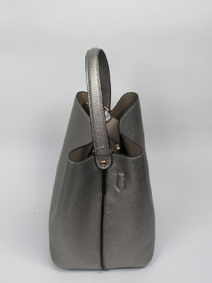 持ち手がウェーブがかった形、真ん中ファスナー、左右にマグネットポケット